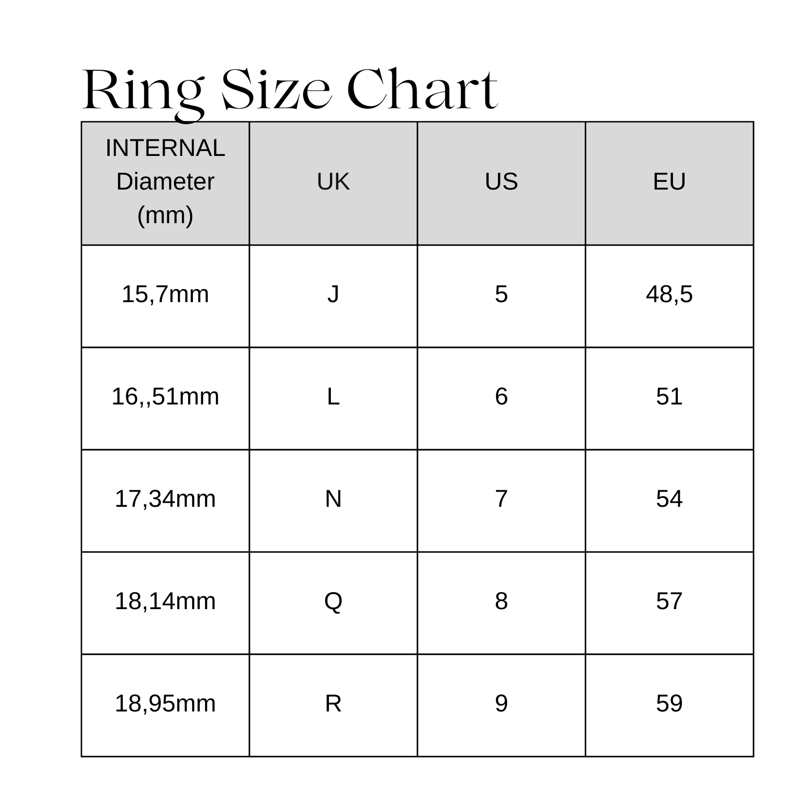 * Προσοχή! Μετρήστε την εσωτερική διάμετρο του δαχτυλιδιού.*